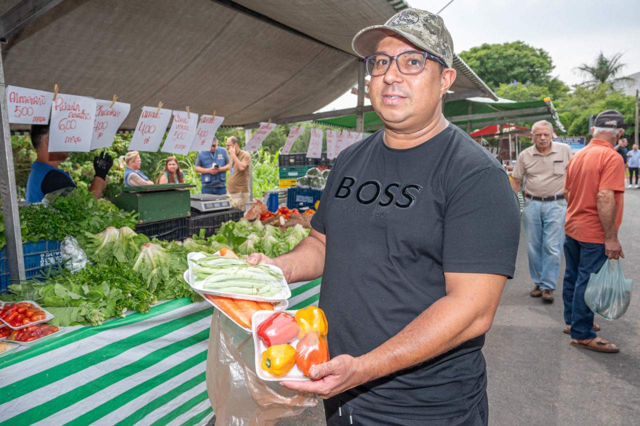 Às quintas-feiras, o cozinheiro Alex Sander Gonçalves tem um compromisso logo pela manhã: fazer compras de frutas, verduras e legumes no varejão do Jardim Rosaura. O morador do Cidade Nova conferiu a nova localização do varejão, que passa a ser realizado na rua Luiz Benachio, em frente ao Complexo Esportivo Romão de Souza e ao Terminal Colônia, atendendo a uma demanda dos permissionários, frequentadores e moradores da região.