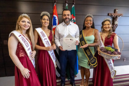 Prefeitura recebe Corte da Uva e Miss Pérola Negra e inicia agenda regional de convites da 41ª Festa da Uva e 12ª Expo Vinhos