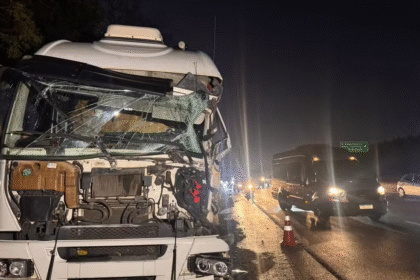 Uma colisão envolvendo um caminhão e um ônibus fretado gerou lentidão no…
