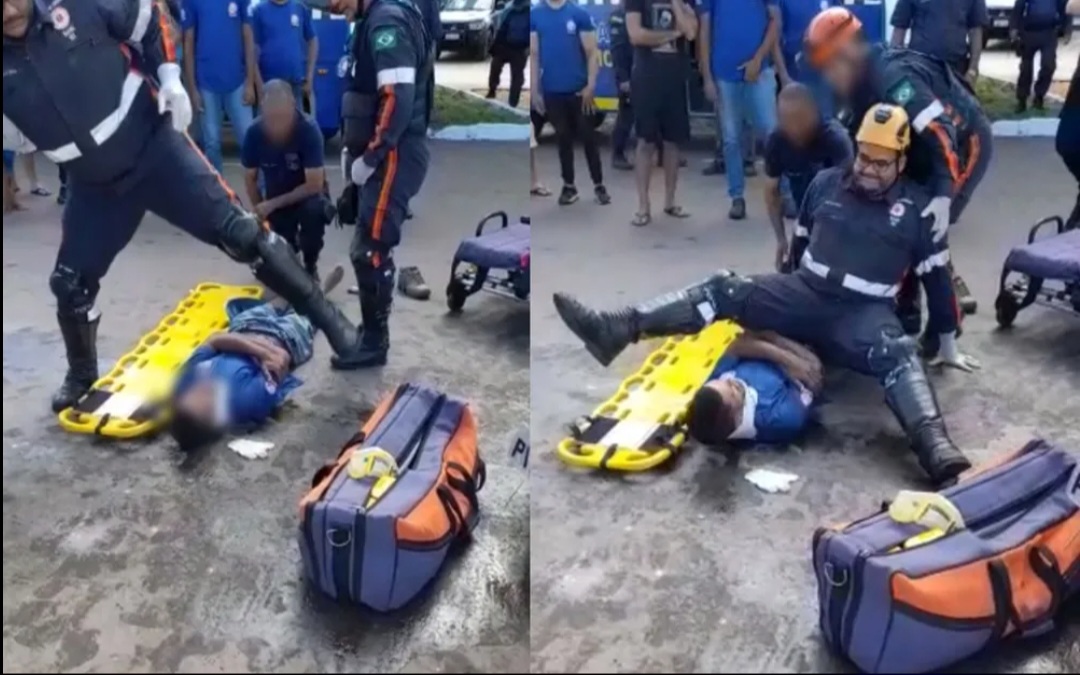 Socorrista do Samu cai sobre paciente durante atendimento e vídeo viraliza