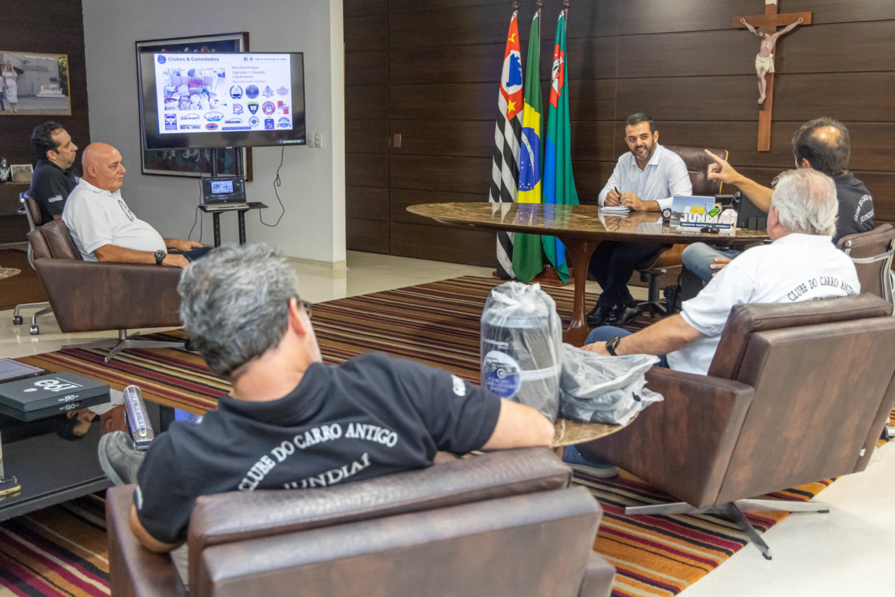 A Prefeitura de Jundiaí apoia a realização do 42º Encontro Anual do Clube do Carro Antigo de Jundiaí, que acontecerá nos dias 1º, 2 e 3 de maio, no Parque da Uva. O evento foi apresentado em reunião institucional no Paço Municipal, com a presença do prefeito Gustavo Martinelli e representantes do clube, reforçando a parceria com a Administração para o fortalecimento do turismo, da cultura e do lazer na cidade.