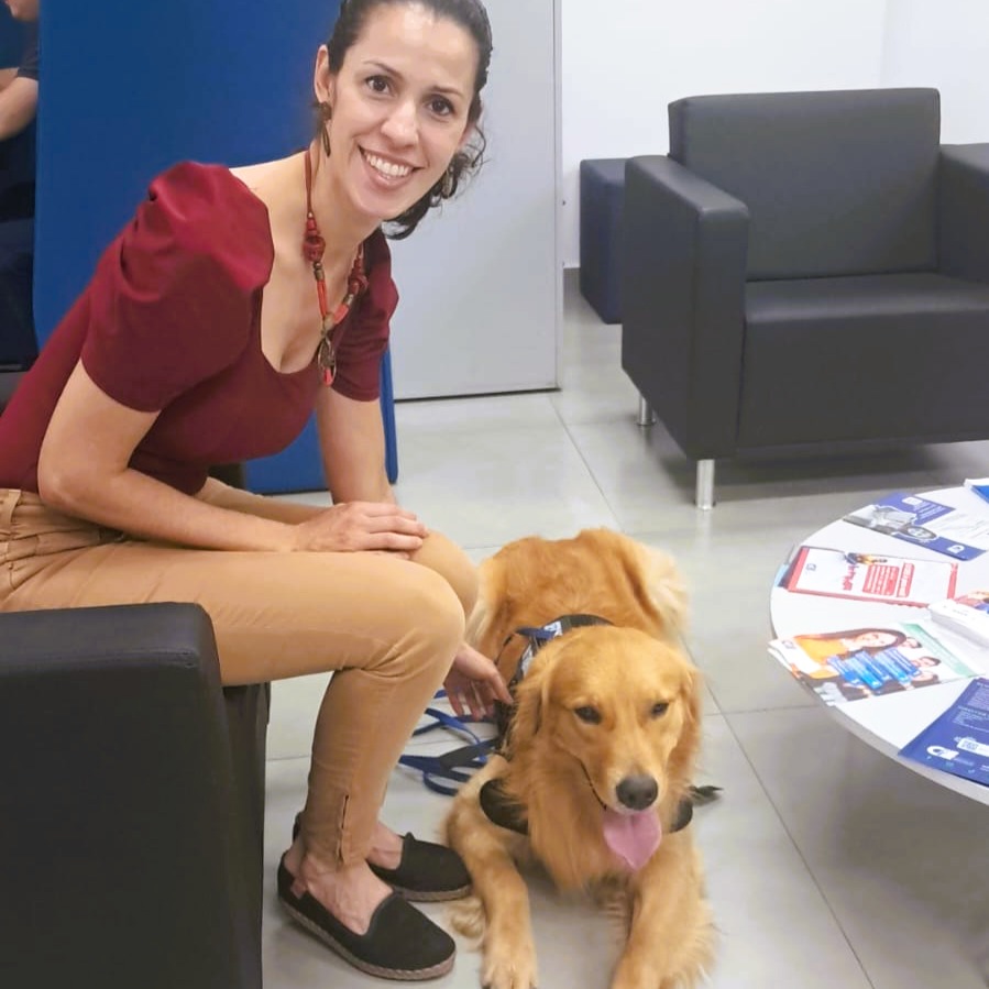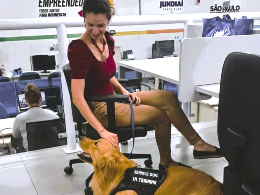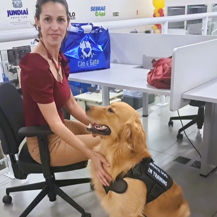 Entre os diversos perfis que utilizam o coworking, está o da psicoterapeuta Patrícia Rabelo Nardo, que recentemente levou seu cão Peter para realizar uma etapa do treinamento de socialização — parte do preparo do animal para atuar como cão co-terapeuta em atendimentos clínicos. A ação, realizada com autorização da equipe do espaço, chamou a atenção pela proposta inusitada e pelo cuidado com o uso responsável do local. “Eu precisava que o Peter tivesse contato com pessoas, sons e movimentação, num ambiente de trabalho real. Como o coworking é onde desenvolvo meus projetos e cursos online, foi o espaço ideal para isso. O Peter ficou tranquilo ao meu lado, enquanto eu trabalhava, e pôde interagir de forma controlada com o público”, conta Patrícia.
