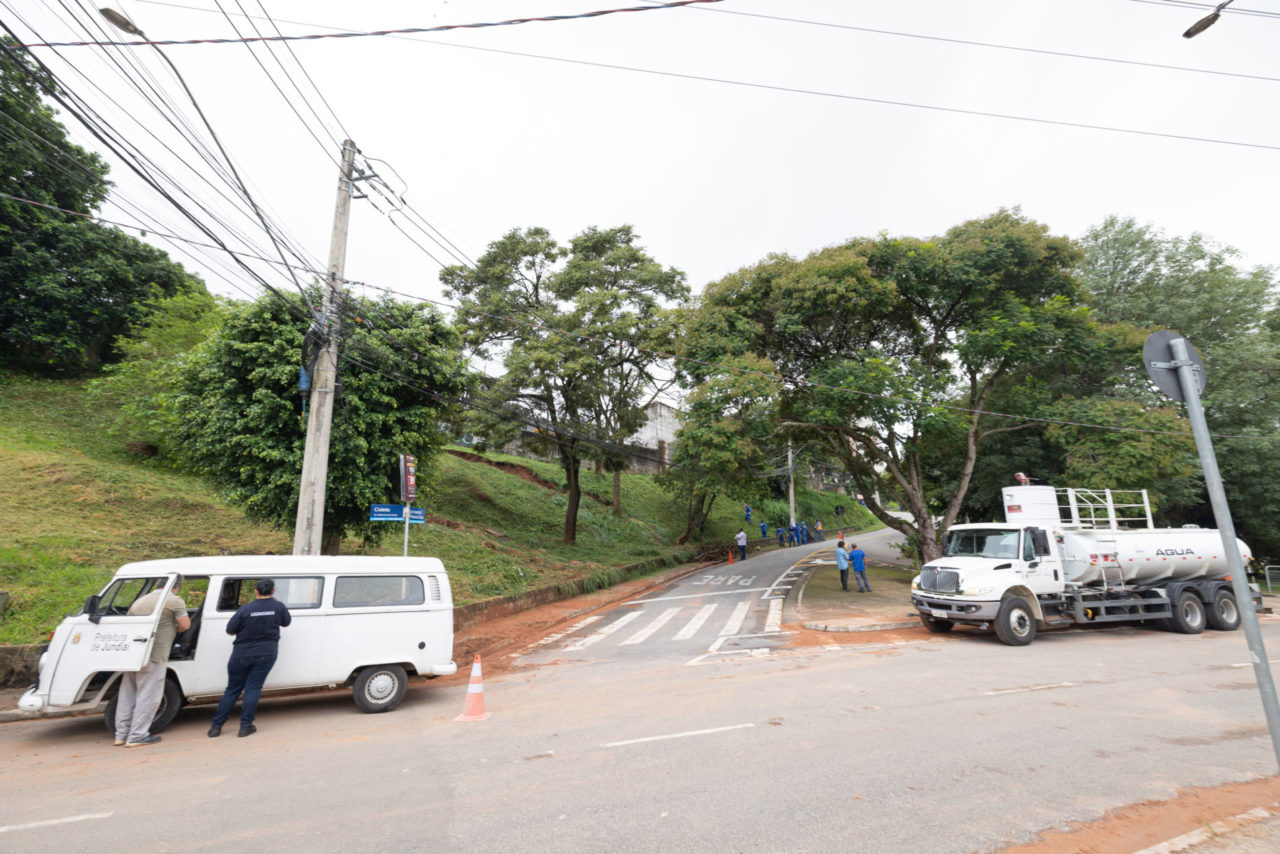 Devido à força da chuva que atingiu a cidade, houve o rompimento de uma galeria de águas pluviais na Avenida Francisco Pereira de Castro, na altura do Jundiaí Shopping, provocando o deslocamento de terra para a via. Equipes da Secretaria de Infraestrutura e Serviços Públicos (SMISP) atuam desde a noite de ontem na limpeza da pista, desobstrução de bocas de lobo e retirada da lama.