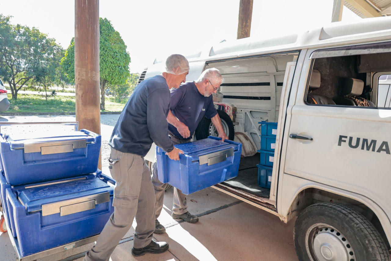 Todas as manhãs, por volta das 9h30 ou 10h, o alimento chega quentinho aos centros comunitários das comunidades atendidas. As refeições – sempre compostas por uma sopa nutritiva feita com ingredientes frescos e naturais, acompanhada de fruta ou doce como sobremesa – são preparadas diariamente por uma equipe dedicada de 12 profissionais, entre 7 cozinheiros, 2 técnicas em nutrição, 2 agentes operacionais e 1 auxiliar de limpeza. A entrega é feita em veículos próprios da Fundação, em caixas térmicas especiais chamadas hotbox, que garantem a qualidade e a temperatura ideal da comida até o momento do consumo.