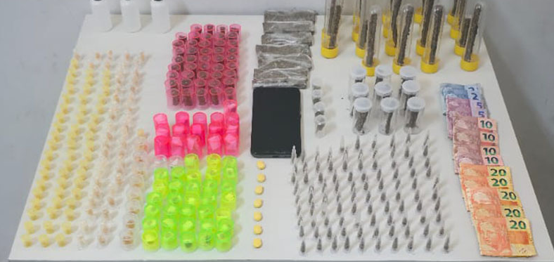 O suspeito foi detido poucos metros adiante. Durante a revista pessoal, foram encontrados diversos tipos de entorpecentes, além de R$ 168 em espécie e um celular. Ao ser questionado, ele confessou estar vendendo drogas desde as primeiras horas da manhã.