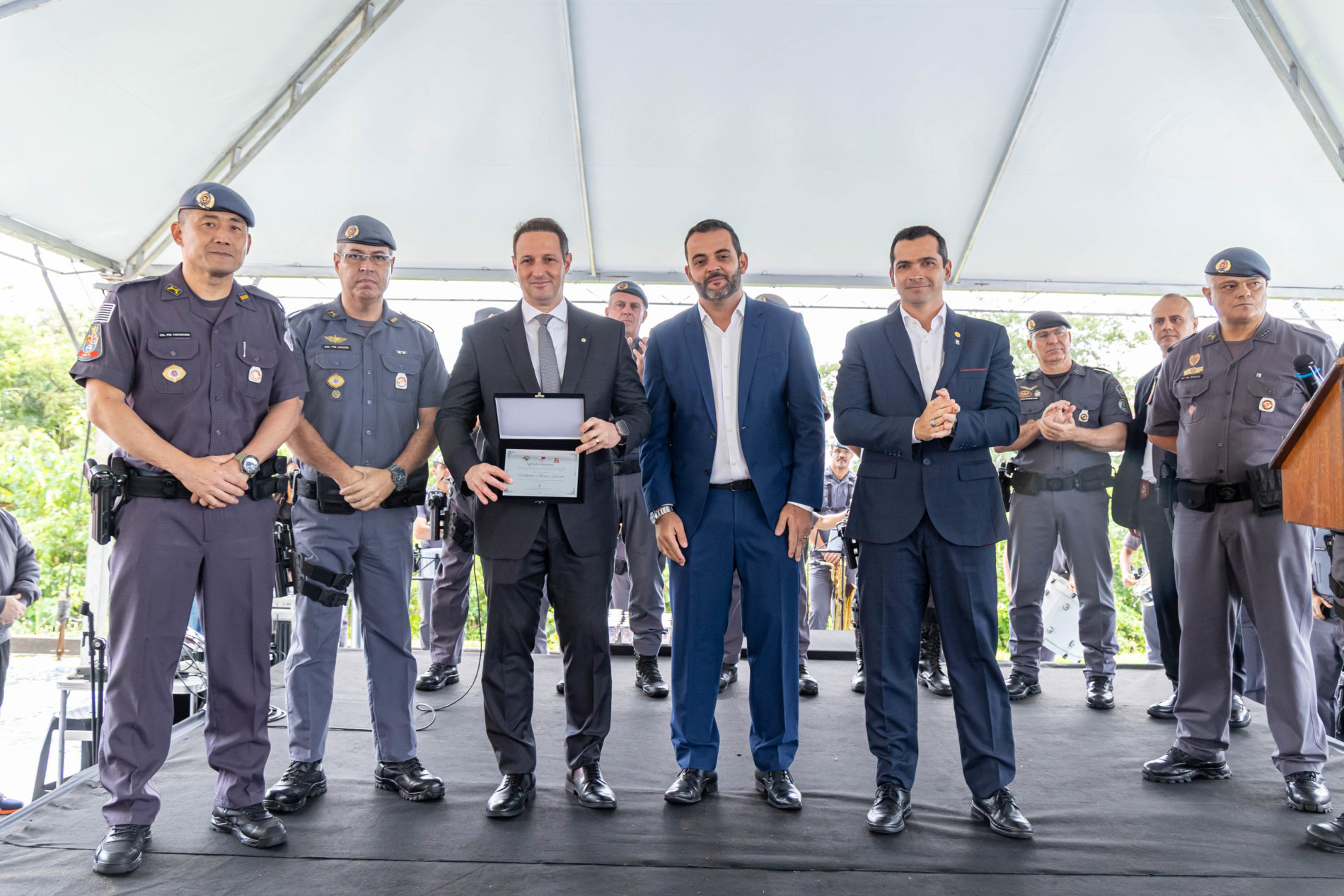 O deputado estadual, Capitão Telhada, apontou que segurança pública depende de um “tripé” que envolve efetivo, equipamentos e treinamento. “Hoje esse tripé está sendo atendido: homens e mulheres preparados, dezenas de viaturas sendo entregues e um trabalho constante de modernização, reestruturação e valorização das carreiras. Segurança é a base de uma sociedade ordeira, de uma cidade que quer se desenvolver e de um país que quer proporcionar dias melhores para as futuras gerações”, destacou.