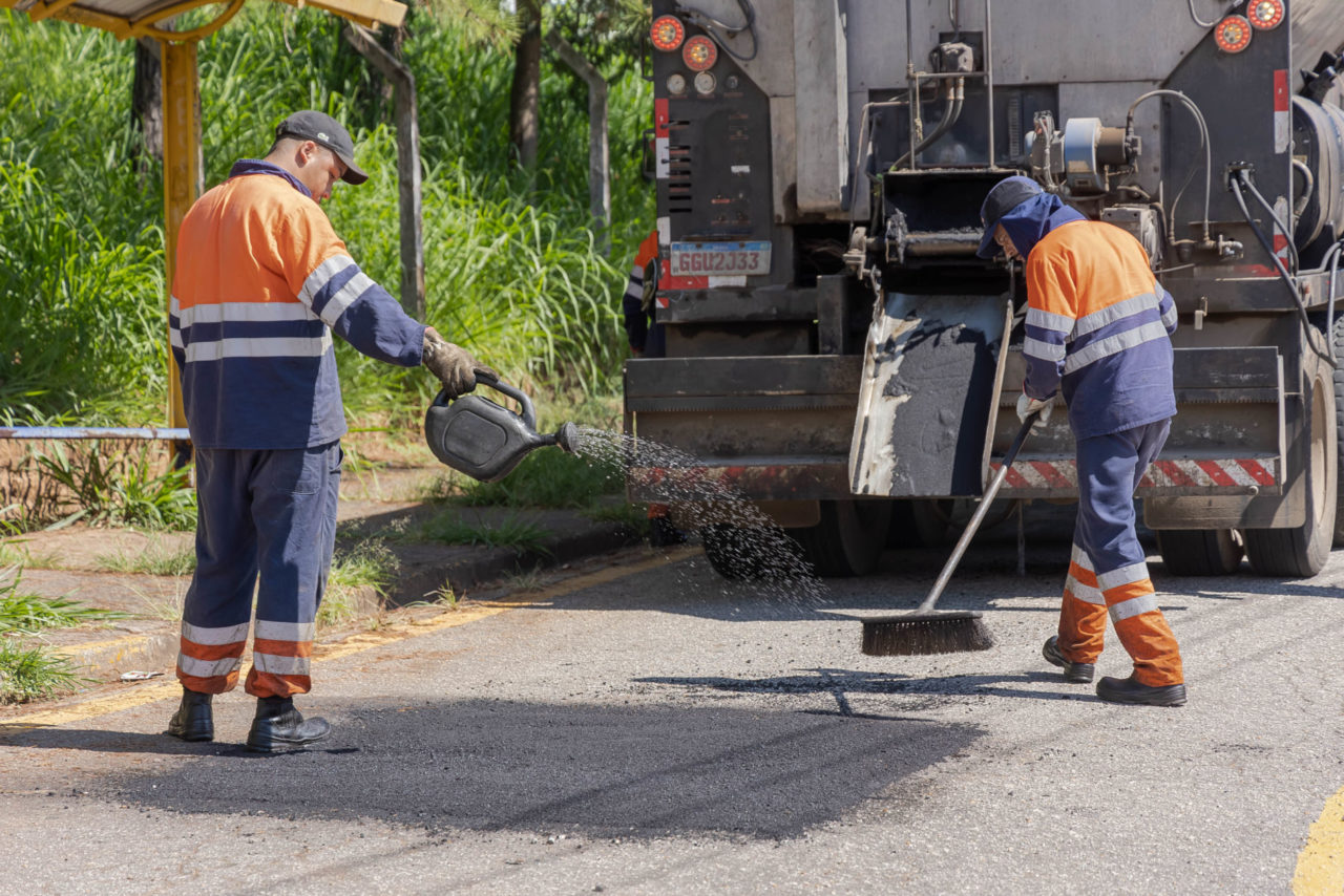 Os trabalhos seguem um processo técnico que inclui a preparação da área, aplicação de cola, colocação da massa asfáltica e compactação. As etapas garantem mais durabilidade ao pavimento e melhores condições de tráfego para motoristas.