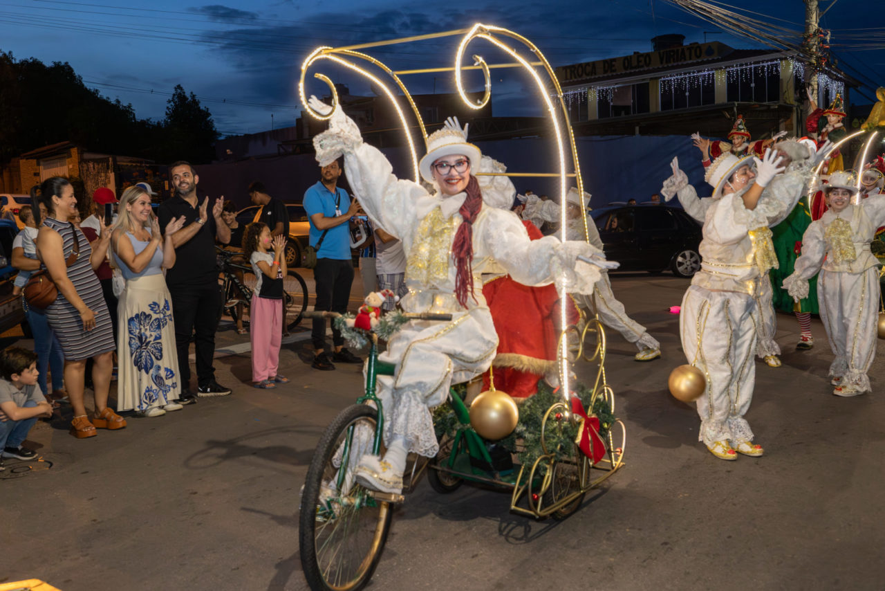 O espetáculo transformou a Estrada Municipal do Varjão em um grande palco a céu aberto. Ao longo do percurso, o público acompanhou apresentações de bailarinos, artistas circenses, personagens natalinos, pernas de pau, música e coreografias que arrancaram sorrisos, aplausos e olhares atentos, especialmente das crianças, que vibraram a cada nova cena.