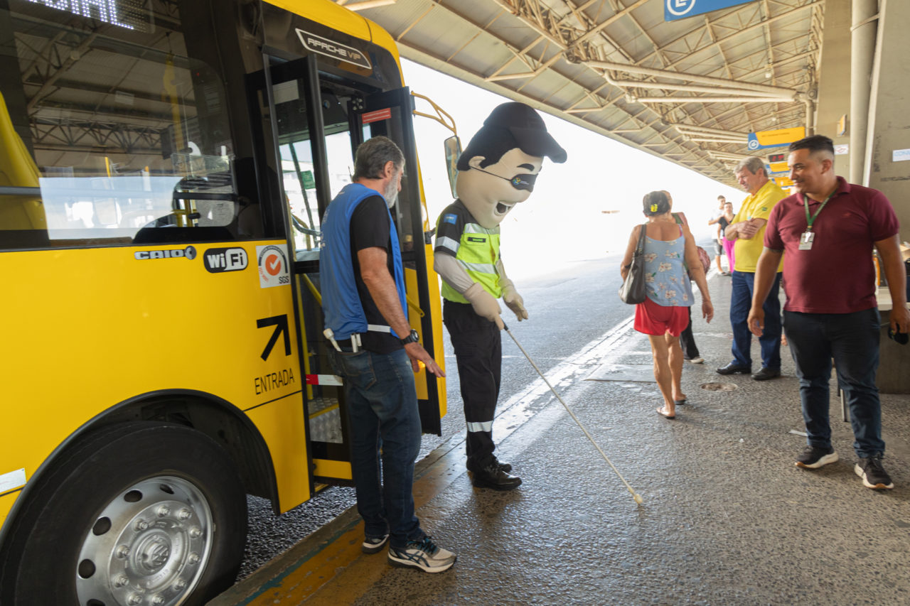Servidores da SMMT, alunos do Instituto Luiz Braille e o mascote da Secretaria Vaguinho também interagiram com os passageiros e deficientes físicos no Terminal Vila Arens. “Estamos conscientizando os munícipes sobre os desafios enfrentados por pessoas com deficiência visual e física no uso do transporte público. Reforçamos o caráter inclusivo na utilização do serviço e a necessidade de termos mais empatia. Afinal, o serviço é para todos”, destacou a secretária de Mobilidade e Transporte de Jundiaí, Ana Paula Silva de Almeida.