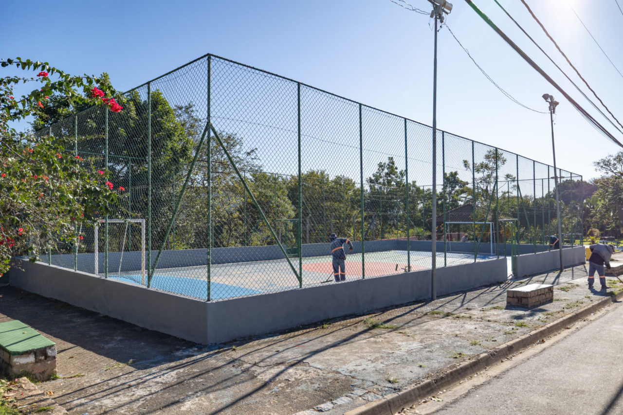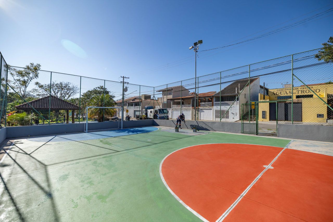 A quadra de futsal também está recebendo atenção especial, com pintura lateral, nova pintura da quadra e manutenção completa do alambrado. Já a quadra de basquete está sendo revitalizada para oferecer melhores condições de uso.
