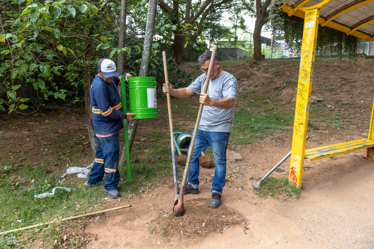 A Praça Professora Edmira Silva, no Jardim Petrópolis, começa a ganhar novos ares. As antigas lixeiras foram substituídas e os espaços de convivência estão sendo reformados.