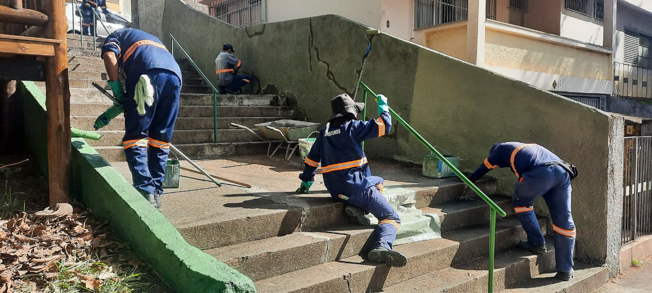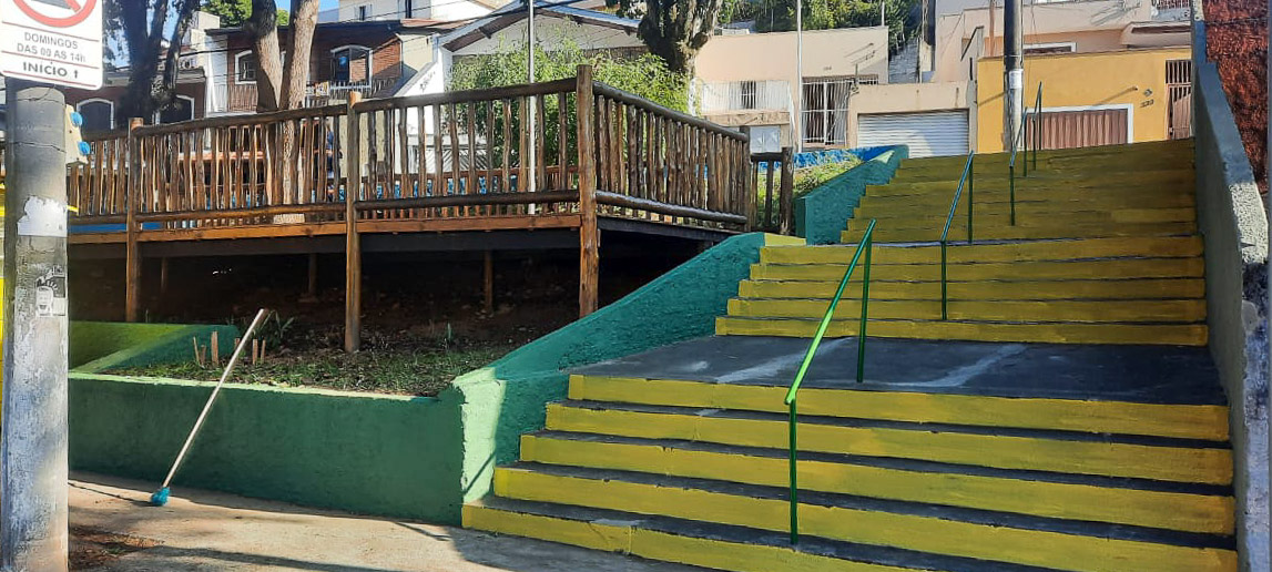 As equipes executaram raspagem da calçada e pintura do meio-fio, manutenção e pintura do corrimão e da escada, além da roçagem completa da área ao redor do deck da praça. As intervenções visam garantir mais segurança e bem-estar para os frequentadores do espaço público.