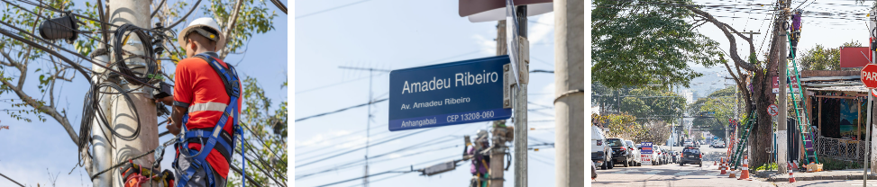 Na última sexta-feira (8), equipes das empresas de telefonia atuaram na Avenida Amadeu Ribeiro, no bairro Anhangabaú, em um mutirão dividido em quatro etapas. Segundo o diretor do Departamento de Iluminação, Carlos Bocci, a ação garante mais segurança a pedestres e motoristas e contribui para a melhoria visual da cidade.
