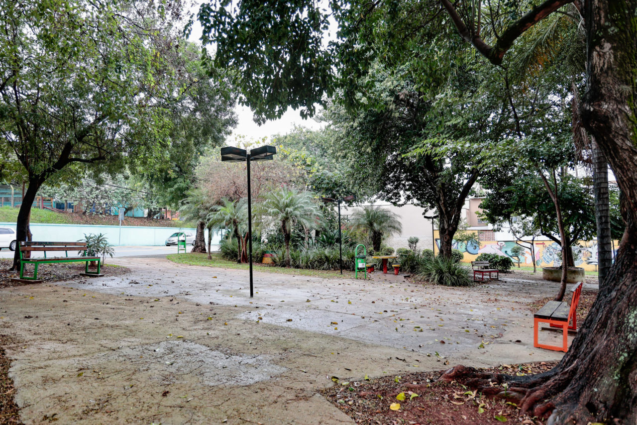 O objetivo é oferecer um espaço de descanso para os frequentadores, especialmente para os pais que aguardam os filhos na saída da EMEB do bairro.