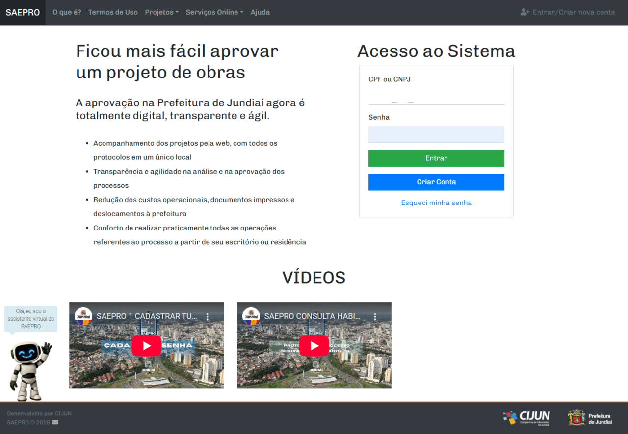 O chatbot estará disponível na página inicial do SAEPRO [aqui] e também será publicado na página de Procedimentos e Roteiros da Secretaria Municipal de Planejamento Urbano e Meio Ambiente (SMPUMA), dentro do site oficial da Prefeitura de Jundiaí.