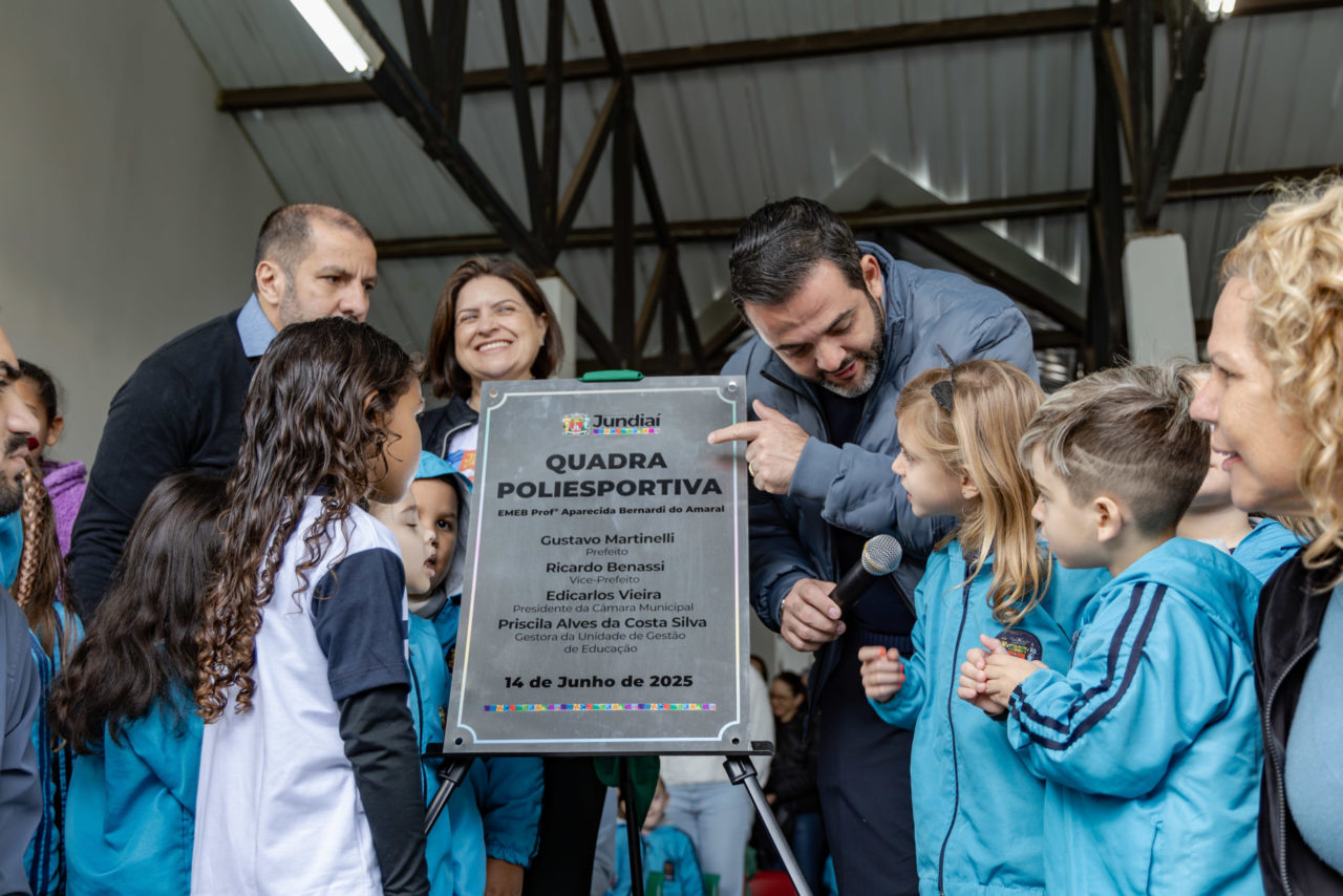 A manhã deste sábado (14) foi marcada pela entrega da nova cobertura da quadra da EMEB Professora Aparecida Bernardi do Amaral, localizada no bairro Morada das Vinhas. A cerimônia contou com a presença do prefeito Gustavo Martinelli, da equipe gestora da Unidade de Gestão de Educação, de famílias e estudantes da comunidade escolar. A entrega faz parte de um conjunto de ações da Prefeitura de Jundiaí voltadas à valorização da educação pública com espaços de qualidade.