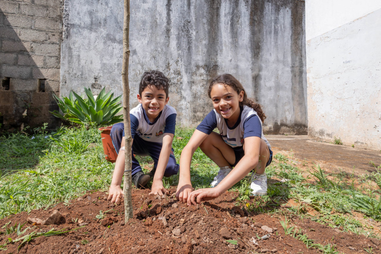 Na ação que aconteceu na última quinta-feira (16), os alunos do 1º ano participaram do plantio de cinco mudas de araticum-da-serra, catiguá e guatambu-mirim, espécies nativas cultivadas a partir de sementes coletadas pelo Jardim Botânico.