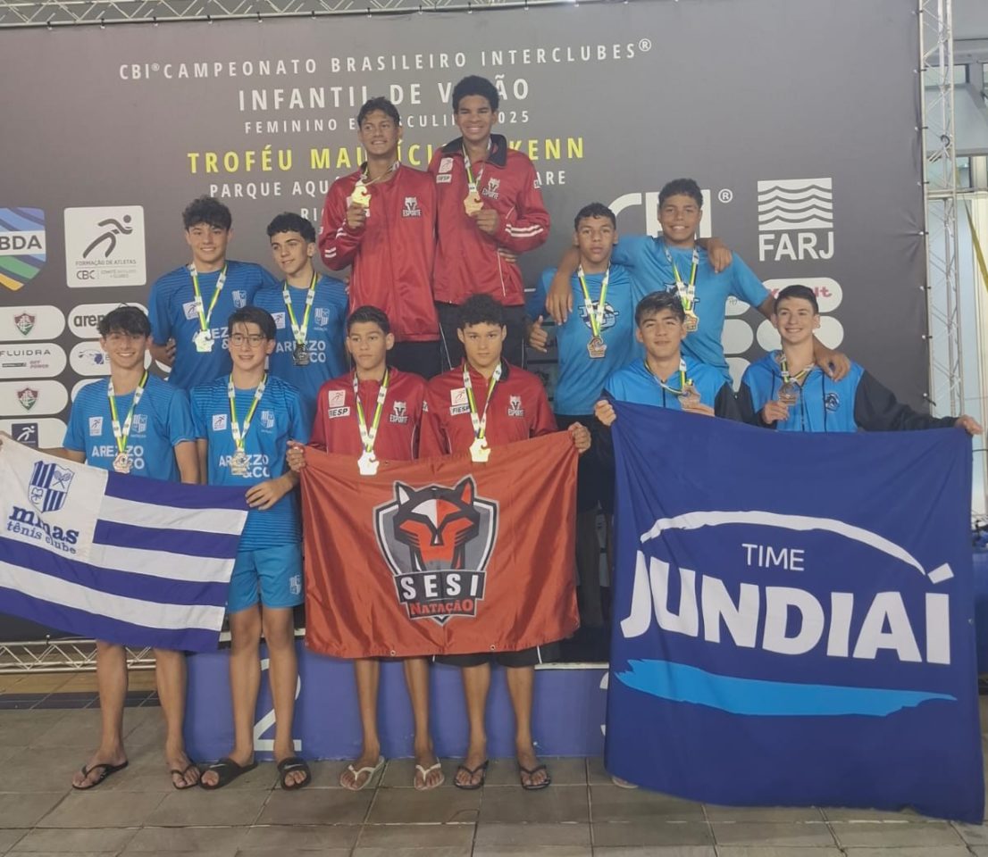 O Time Jundiaí de Natação alcançou um feito inédito ao conquistar a medalha de bronze no revezamento 4x100m livre masculino do Campeonato Brasileiro Infantil, realizado no Rio de Janeiro. Essa foi a primeira vez que uma equipe representando o município subiu ao pódio em provas de revezamento nesta competição nacional.