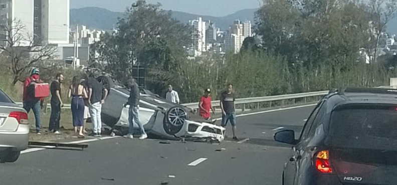 Na tarde de domingo (21), um automóvel capotou na curva de acesso a Jundiaí pela Rodovia Engenheiro Constâncio Cintra, nas proximidades do bairro Jardim Danúbio.